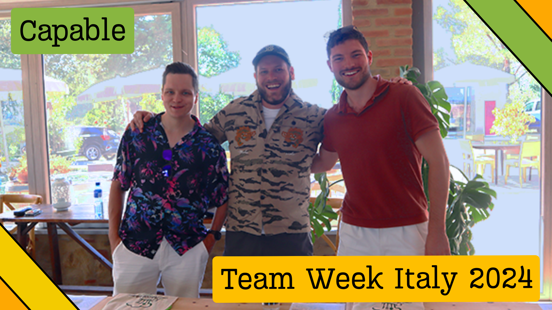 Our team week in Tuscany, hosted by Resolution, was a great experience! We bonded, brainstormed, and improved our Capable app. The week included talks that helped us refine the app, improve feedback implementation, and enhance customer support.