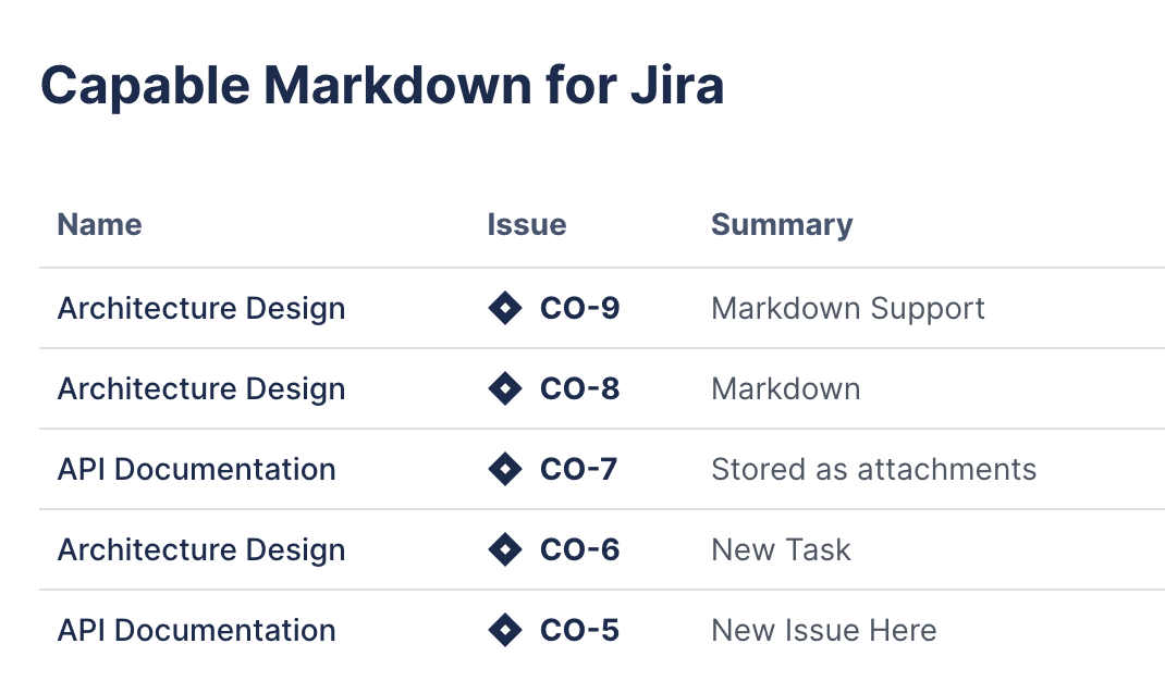 Capable is excited to introduce Markdown for Jira, a powerful new app that lets users write in Markdown right within Jira. Clean, consistent, and visually clear issue descriptions, comments, and other work item fields are now easier than ever to create and maintain - without leaving the Jira interface or copying from external tools.