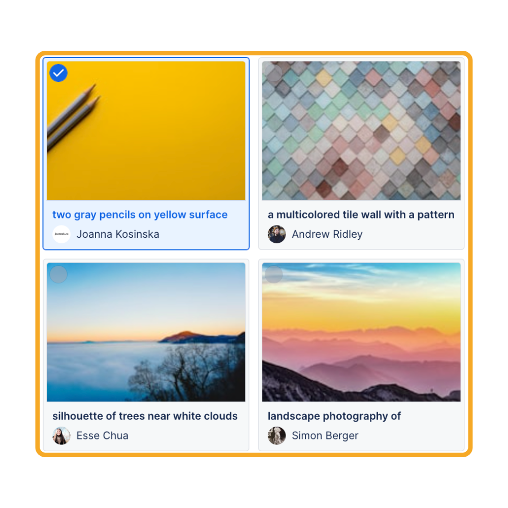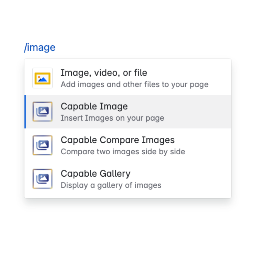 Drop images into any page directly from your library—or pull from the 5M+ Unsplash catalog—right inside the Confluence editor.