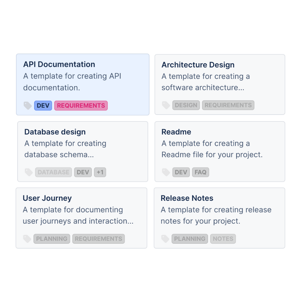 Use built-in examples or your own custom templates to standardize specs, RFCs, and runbooks across teams.