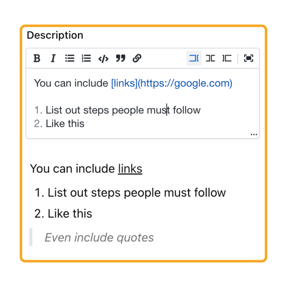You can use links, bold text, bullet points and more to explain the different transitions.