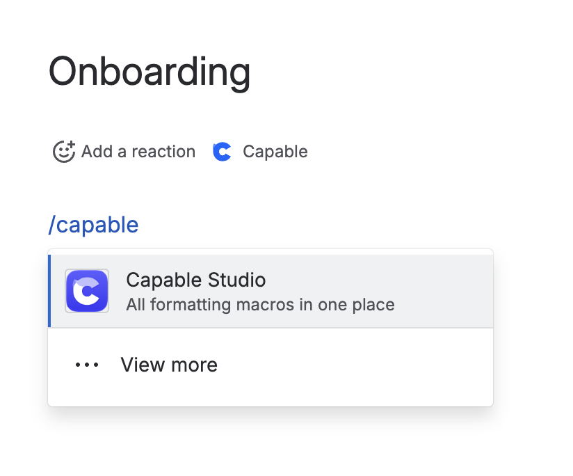 You can access the Capable Macro Studio from the Capable Menu at the top of a page, or using the new 'Capable Studio' macro that lets you insert multiple macros in one go in the exact place you want.
